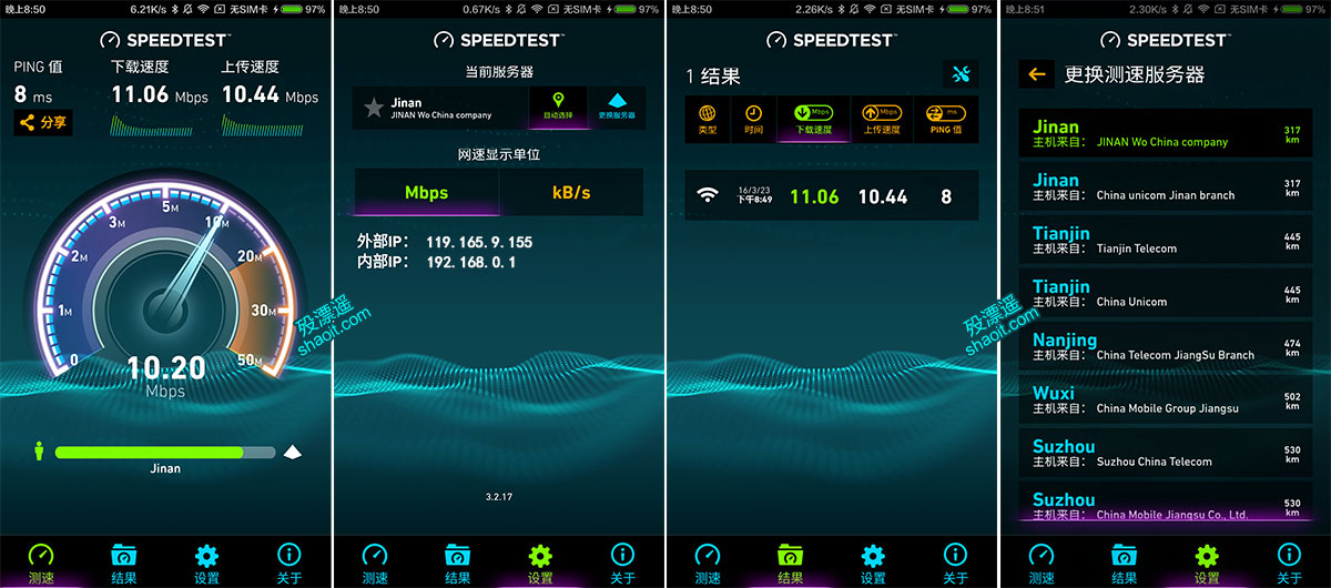 【链接登录后可见】是一个宽带测速网站,【链接登录后可见】的界面具有可视化的特点,【链接登录后可见】可以在一个世界地图上来选择指定的测试服务器,Speedtest的APP,延续了它的有点,使用Speedtest只需要30秒就可以检测手机网络的速度。467336