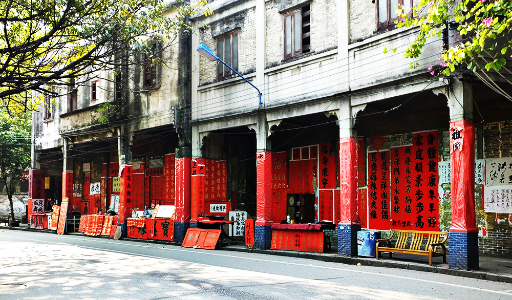 路的两旁都是卖手写挥春的摊