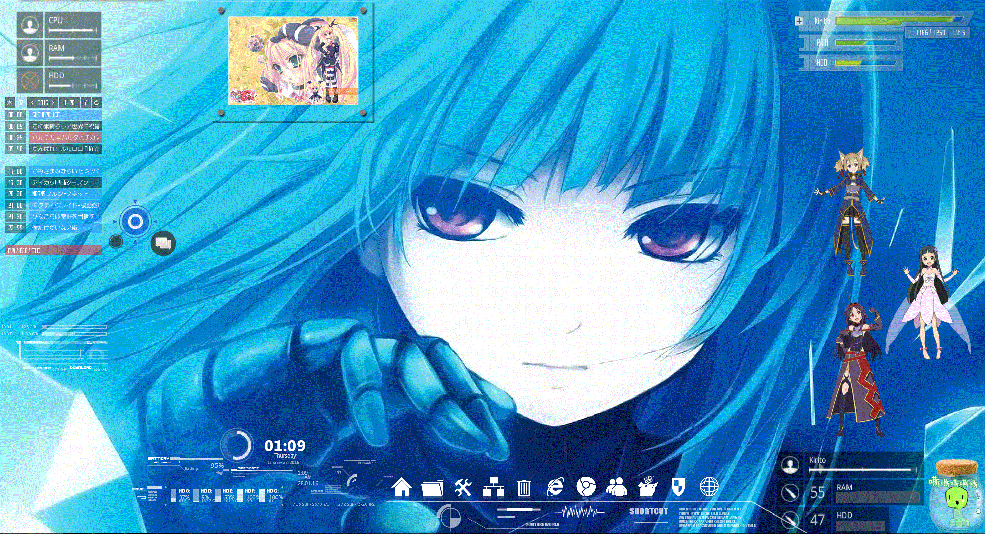 SAO Utils和雨滴rainmeter。混搭的。壁纸搜得到- -。我只是临时凑的。效果不太好0-0#15x