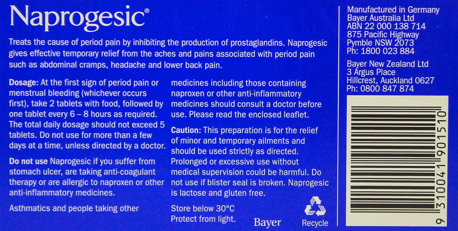 来自德国Bayer拜耳的naprogesic【我也不知道中文是什么 被奉为